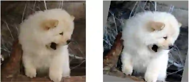 左:ImageNet数据集的原始图像。右:AutoAugment策略转换的相同图像。首先,最大化图像对比度,然后旋转图像。