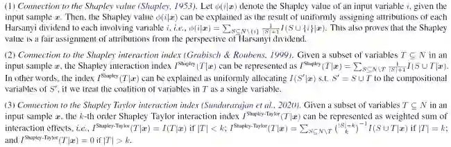 能够解释博弈论中大量经典指标的基本机理,比如 Shapley value [16]、Shapley interaction index [17],以及 Shapley-Taylor interaction index [18]。