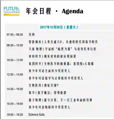 2017年10月28日,2017未来科学大奖颁奖典礼暨未来论坛年会即将揭幕,本次年会活动在探讨基础科学的前沿成果之外,还将包括智慧城市、天体物理、材料科学、基因科学、生物医药、量子物理等对未来科研、产业、社会产生深远影响的超强科技,同时还有3场青少年与未来科学大奖获奖人的对话。