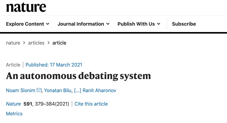Nature封面:大脑里装了4亿篇新闻,能与人类自主辩论的最强AI辩手来了!