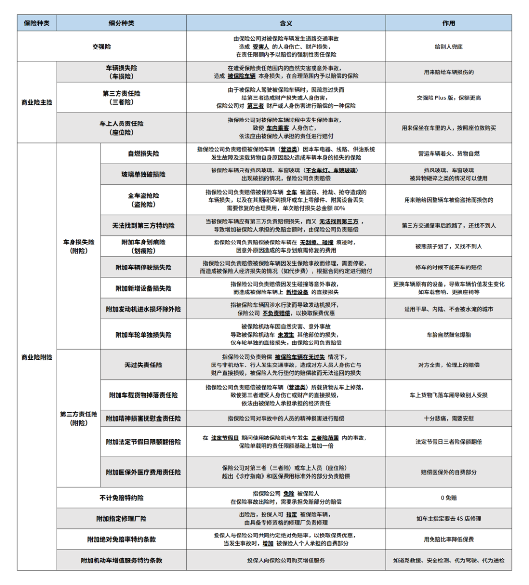 险种内容:新能源汽车商业险覆盖了电车在行驶、停放、充电与作业四大场景,明确汽车的保障内容,如车身、电池及储能系统、电机及驱动系统、其它控制系统、其它所有出厂时的设备。