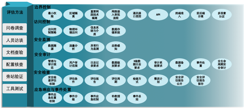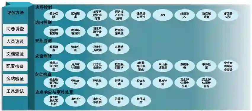 明确了金融业机构边界管控、访问控制、安全监测、安全审计、安全检查、应急响应与事件处置等数据安全运维相关安全评估的具体内容、评估方法和结果判定依据。