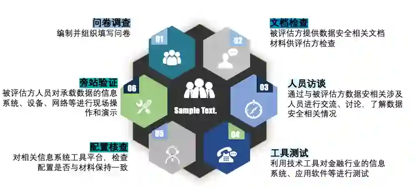 金融数据安全运维:明确了金融业机构边界管控、访问控制、安全监测、安全审计、安全检查、应急响应与事件处置等数据安全运维相关安全评估的具体内容、评估方法和结果判定依据。金融数据安全评估采用的评估方法与风险评估类似,采用问卷调查、人员访谈、文档查验、配置核查、工具测试和旁站验证6种评估手段。