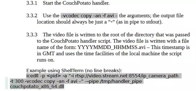 手册中详细指导了工具的使用方法。CIA特工可以用命令行界面启动工具,然后在参数中给出RTSP或H.264视频流URL,还有保存视频流的磁盘路径。