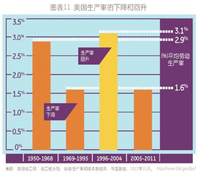 而1996-2005年,美国的经济又出现了高速的增长,原因是第二次创新,来自于计算和全球互联网(基于信息存储、计算和通讯技术方面的突破)的出现,叫做互联网革命(自1950年开始的以互联网为代表的革命)。