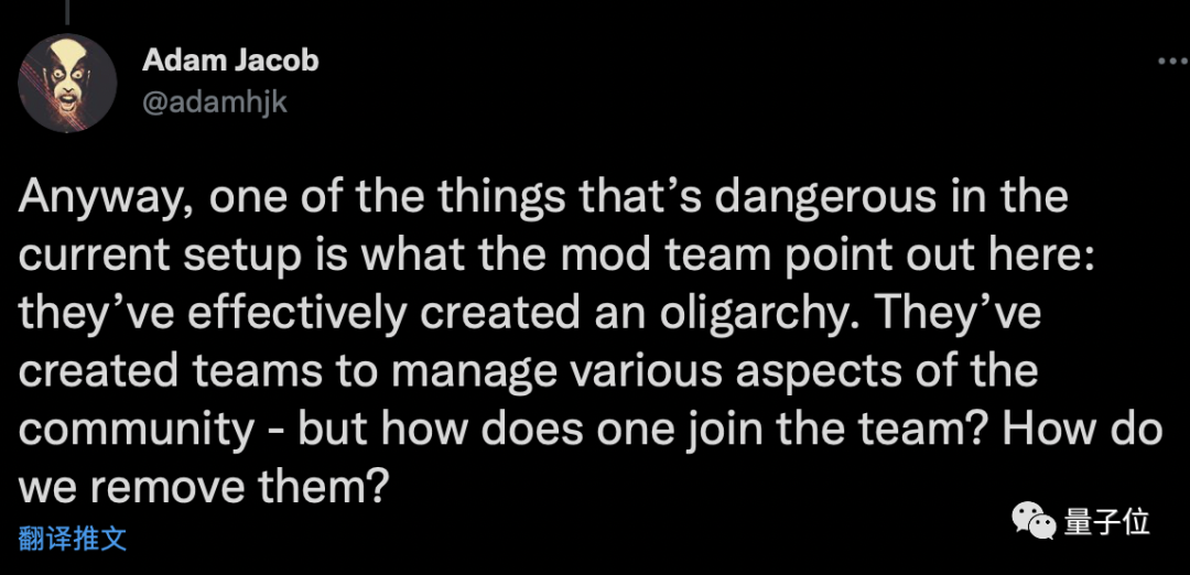 他认为Rust核心团队权力过大,核心团队管理着社区的各个方面,但是他们之外的人却无法决定谁加入核心团队,或者被踢出核心团队,从而在Rust社区形成了一种“寡头政治”。