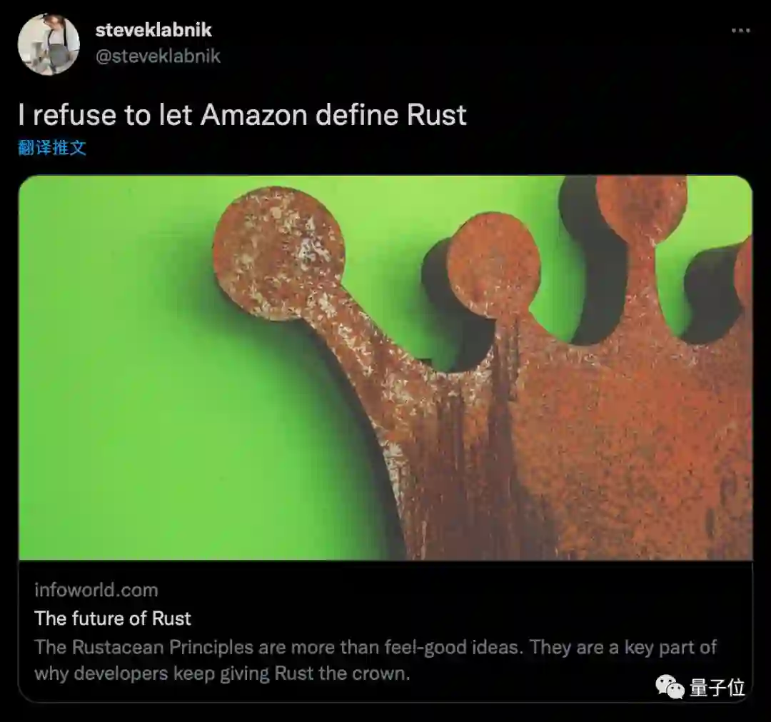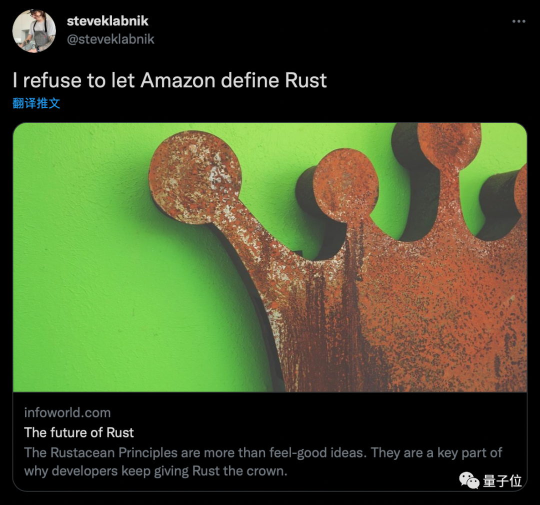 我认为,既不该让核心团队,也不该让亚马逊团队来领导或定义Rust。