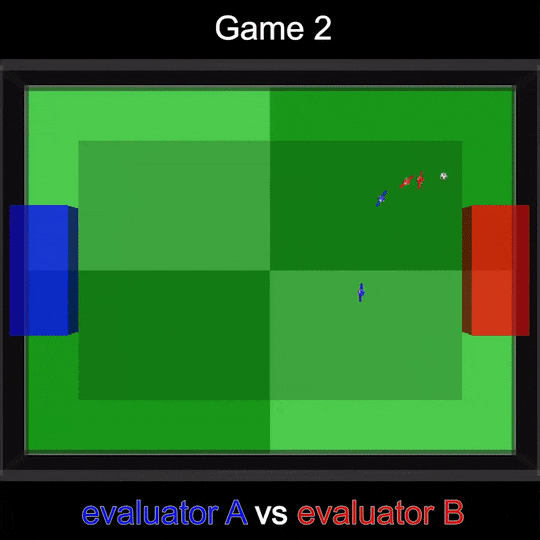 上图展示了智能体A、B和C之间比赛的录像,定性地展示了足球战术策略的多样性。