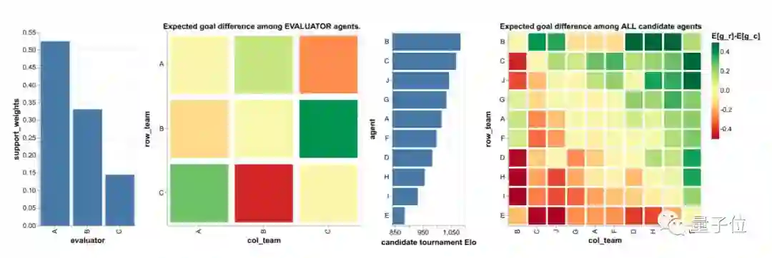 实验中选出的10个智能体中,B是最强的,Elo评分为1084.27;其次是C,Elo评分为1068.85;A的评分1016.48在其中仅排第五。