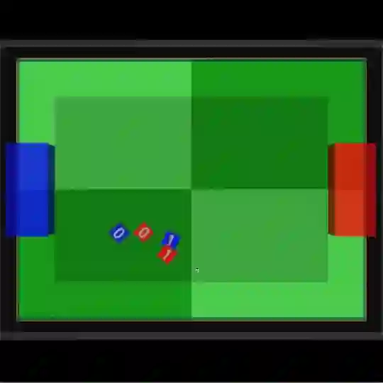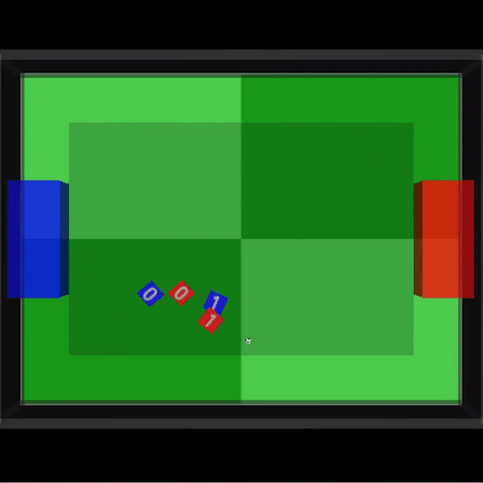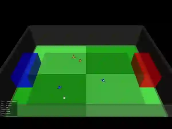 让我们分别从俯瞰视角来看一下其中一场2V2的足球比赛吧: