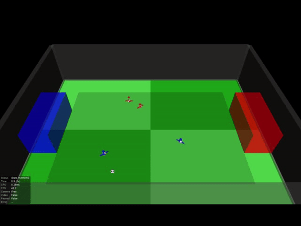 而足球是一个很好的训练多智能体的强化学习环境,比如传球、拦截、进球都可以作为奖励机制。同时对足球世界的模拟也需要物理引擎的帮助。
