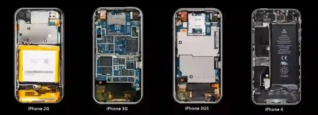 iPhone 4 甚至在内部上也做了重新的设计,变得更加简洁统一,在此后的几代 iPhone 上,内部的整体结构也和 4 代一脉相承。