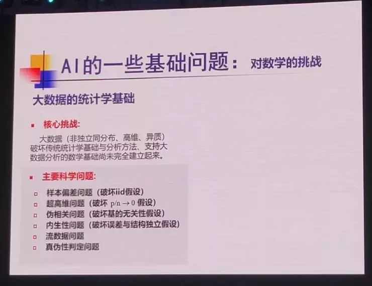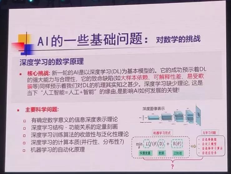 基于以上提及的下一步人工智能发展目标,徐宗本院士指出,要想真正实现机器的自动化,必须首先解决以下五个数学领域的基础问题: