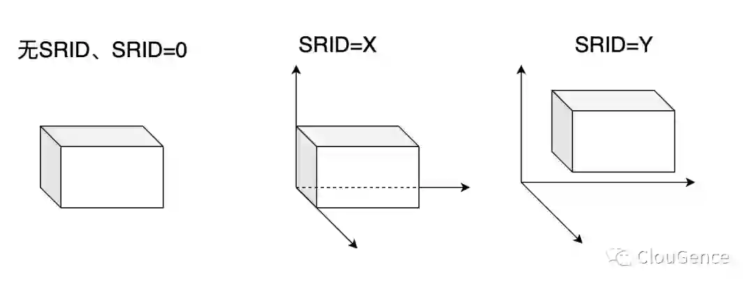 当 SRID 为 0 或者不使用 SRID 时,表示一个几何图形实例没有被放到任何一个坐标系中,我们无法定位其位置。例如通过长宽高的具体值我们可以知道一个正方体的形状,但是我们没法知道他的具体坐标。
