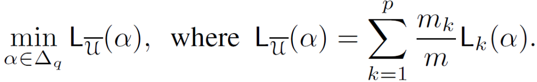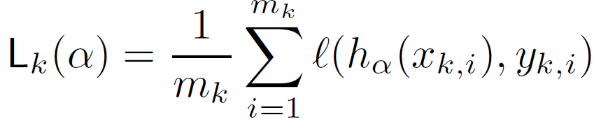 给定确定的基本预测因子,引入一个集成权重 α。令 L_k(α)表示经验损失函数,L_D(k)(h_α) 表示域 k 中 m_k 个样本的集成:
