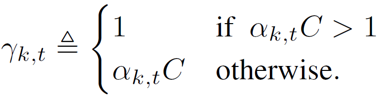 作者提出了两种计算概率 γ_k,t 的方法。一是均匀抽样,γ_k,t=C/q。二是加权随机抽样,