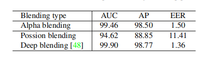 Face X-Ray对于“半合成”图像有奇效,但是也有两个局限性,第一是对于纯合成的图片,由于标记无法有效识别,所以FaceX -Ray无法攻克。这也就是前面说的:“这个方法依赖于一个混合步骤,因此可能不适用于完全合成图像”。