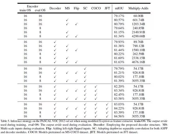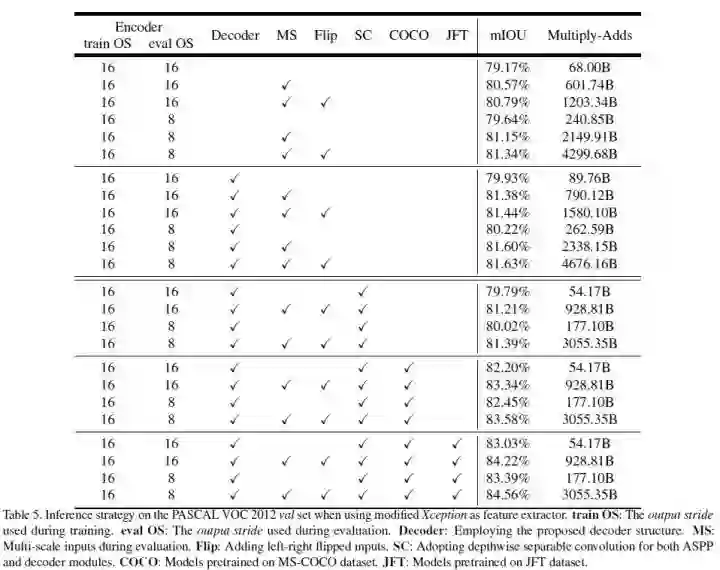 作者也把 Xception 当作了 Encoder,没有使用 DeepLab V3 中的 multi-grid 方法,得到的效果是所有模型中最好的。