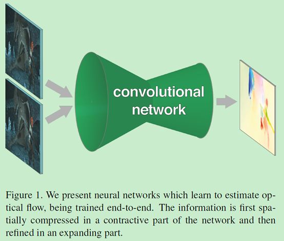 卷积神经网络已成为许多计算机视觉领域的首选方法。 它们成功地应用于分类任务,但最近提出的架构还能够达到像素预测,如单个图像的语义分割或深度估计。在本文中,我们提出端到端训练CNN来学习从一对图像中预测光流场。