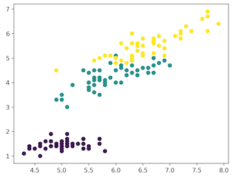 紫色:Setosa,绿色:Versicolor,黄色:Virginica