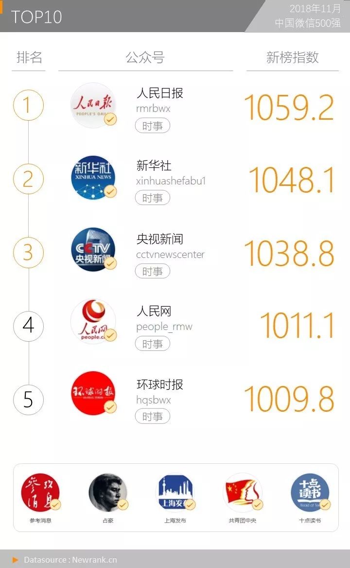请认准由新榜(newrank.cn)认证出品的中国微信500强月榜、年榜。
