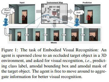 代理在靠近被遮挡目标对象的三维环境中实例化,并可在环境中自由移动以执行对象分类、对象定位和l对象分割。 为了实现这一切,研究人员开发了一种新的模型(Embodied Mask R-CNN),供学习者战略性地提高他们的视觉识别能力。