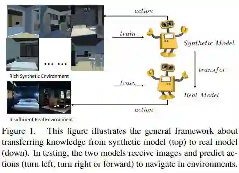 在现实世界中,为训练机器人进行有效的导航,大量训练数据是必不可少的。也就是说,为训练机器人而获取足够的现实数据是非常昂贵和劳动密集的。人工模拟的学习环境可以大大提升现实世界中导航训练的便捷性,但仍然无法与真实的环境相匹配。在强化模型中调整视觉表示和策略行为的映射,是解决这一难题的有效方法。