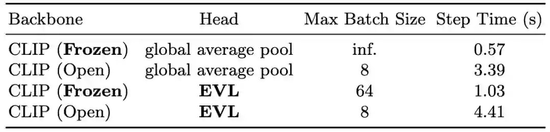 表 2 中我们展示了固定骨干网络带来的训练开销降低。内存方面,在 V100 16GB GPU 上,固定骨干网络可以使单卡 batch size 最高达到 64,而端到端训练则只能达到 8;时间方面,固定骨干网络可以节省 3 至 4 倍的训练时间。