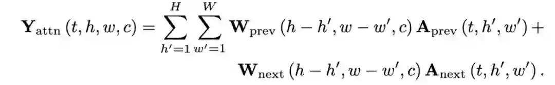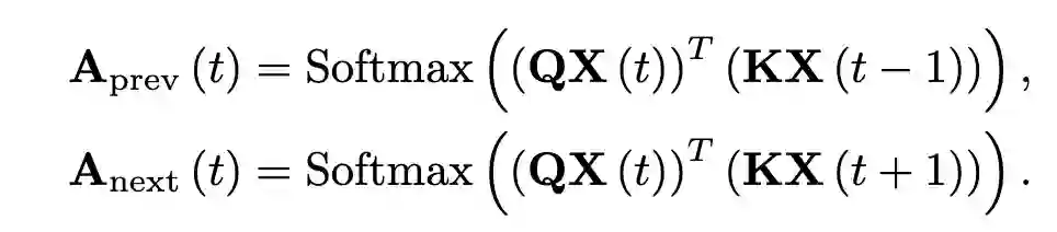 如图 2(b)所示,由于 Transformer 解码器聚合特征时的无序性,我们在网络中添加了额外的时序信息建模模块,以更好地提取位置有关的细粒度时序信息。具体而言,我们添加 3 种额外的位置有关时序信息:第一是时间位置嵌入(Position Embeddings),第二是时间维度深度可分卷积(Depthwise Convolution),第三是相邻帧间的注意力信息。对于帧间注意力信息,我们从图像识别网络中提取对应层的 Query 和 Key 特征,并在相邻帧之间计算注意力图(不同于图像识别网络中,注意力图是由来自同一帧内的 Query 和 Key 特征得到)。所得的注意力图能显式地反映出相邻帧之间物体的位置变化。注意力图经过线性投影后得到反应物体位移特征的向量组,并以逐元素相加的形式融合入图像特征中。