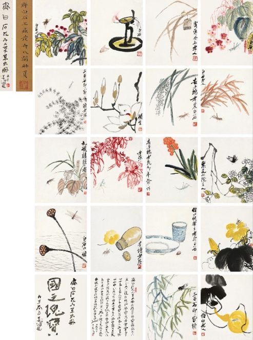 2015年保利秋拍,齐白石《叶隐闻声 - 花卉工笔草虫册页(十八开)》以1.15亿元成交;