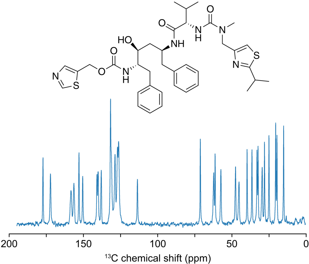 在构建化学位移数据库后,该方法通过 11 种分子固体的 13C 和 1H 分配与实验位移进行了证明,这些有机分子的碳化学位移分配已经(至少部分)通过实验确定:茶碱、百里酚、可卡因、士的宁、AZD5718、赖诺普利、利托那韦、青霉素 G 的 K 盐、β-吡罗昔康、地西他滨和辛伐他汀。