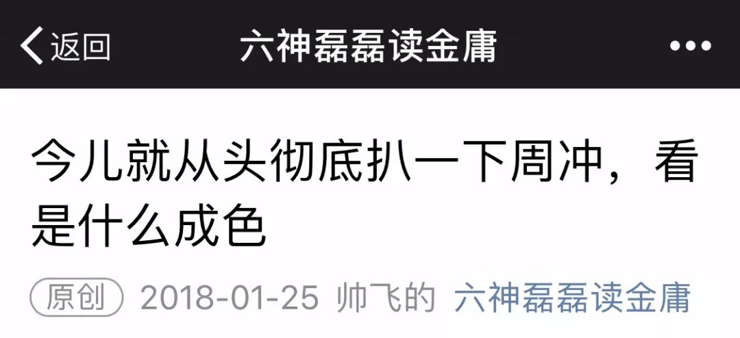 自称生平不好斗的六神磊磊在公众号连续大开杀戒,继上周一篇名为《今儿就从头彻底扒一下周冲,看是什么成色》的文章刷爆朋友圈,今早内力恢复满格的六神磊磊再次泪流满面地出招了。