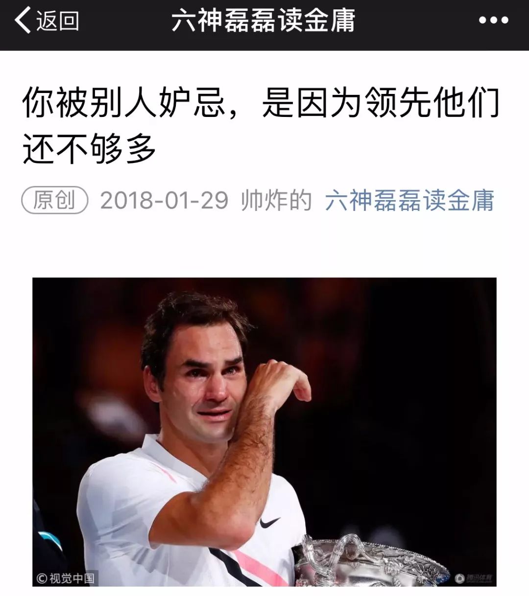 于是就有了今天六神磊磊的《你被别人嫉妒,是因为领先他们还不够多》。