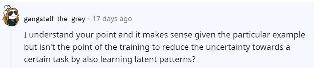 当然关于这个经验的判决准则,也衍生出了颇为有意思的讨论,譬如这里的“熵”究竟如何定义?在简单的例子中或许我们可以判断怎么是熵增的定义,那么在海量的数据与众多的特征之下我们应该如何判断熵这个概念等等,如果大家感兴趣的话可以进入原文看看大佬们的讨论。