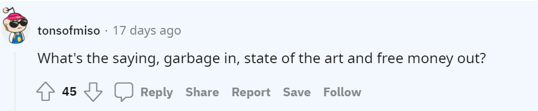(当然,套用这个句式也可以皮一下“Garbage in, State of the art And Free money out”)