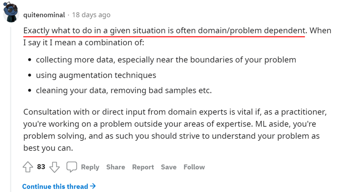 关于这些问题的答案,乐观一点有人认为很大程度上领域知识与实际做的算法工作是独立的,我们收到标注好的数据,建立起模型,获得答案。