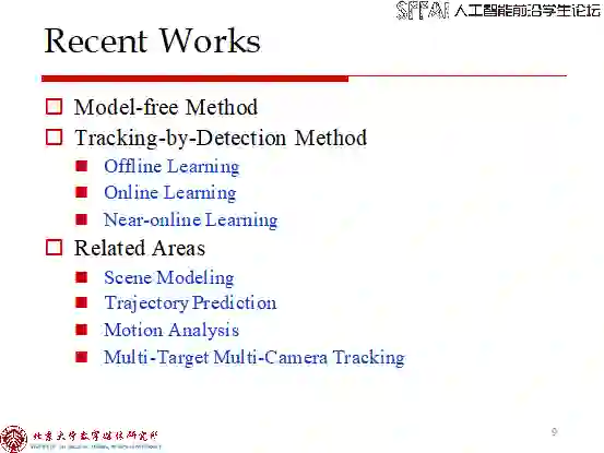 目前大多数的MOT工作的方向为Tracking-by-Detection的思路,即先将每一帧中的目标检测出来,然后对这些检测出来的框做跟踪。另一种思路就是Model-Free,即先将第一帧中的目标检测出来,然后在之后的帧中跟踪第一帧标注出来的目标。