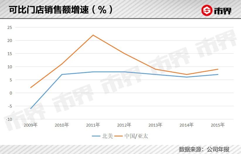 从业绩来看,中国在内的亚太地区曾是星巴克全球业绩增长最快的区域。2011年,中国/亚太地区可比门店销售额增速达到22%,比北美地区高出整整14个百分点。