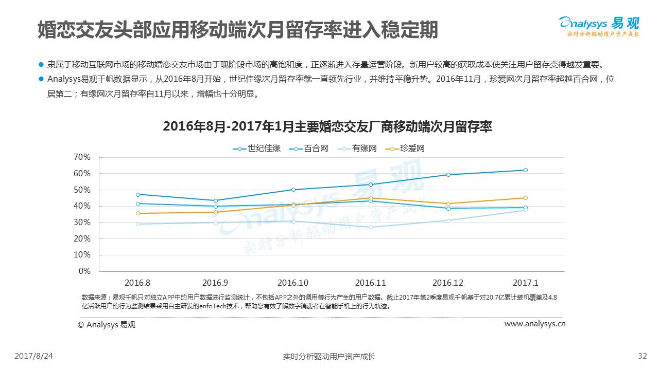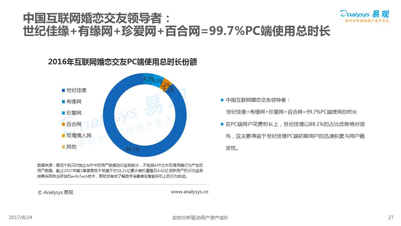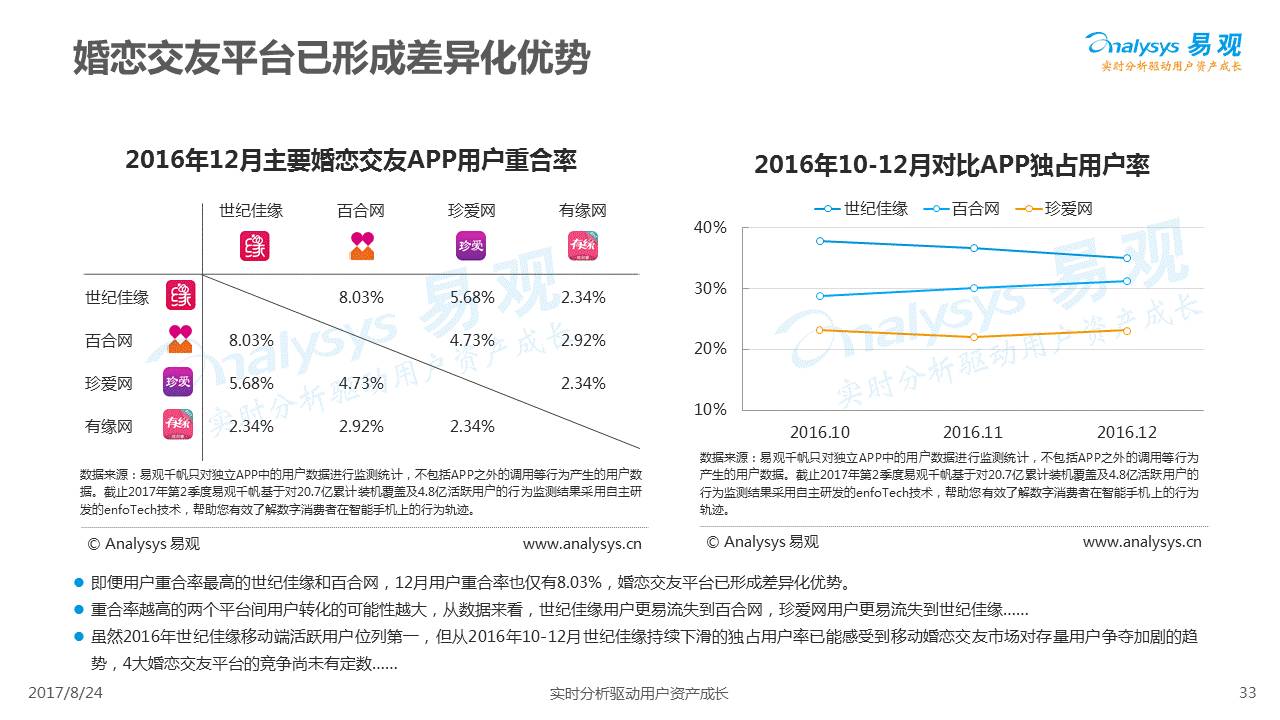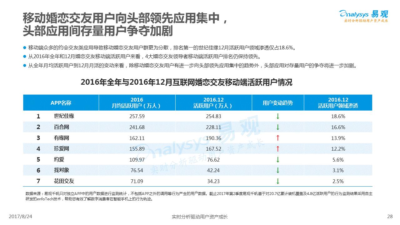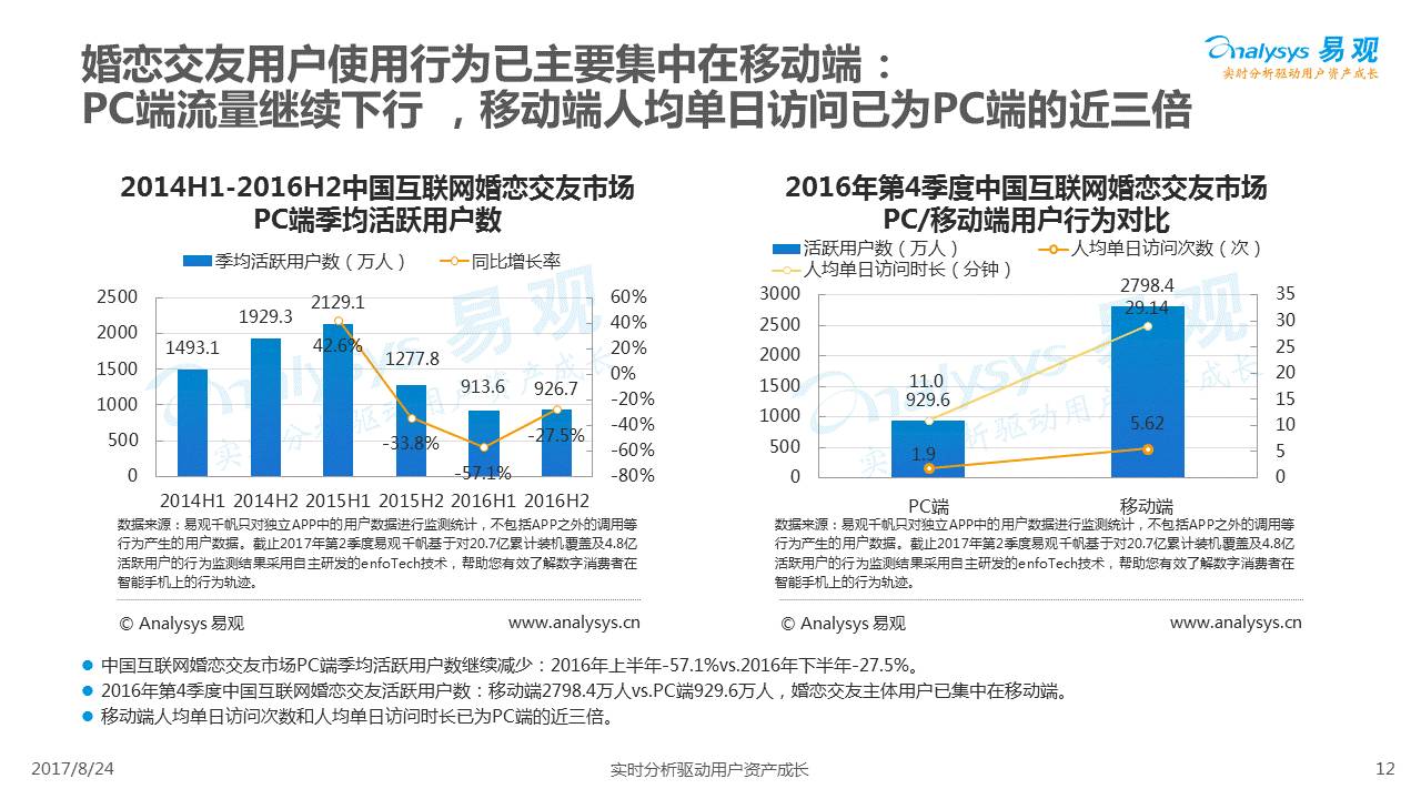 中国互联网婚恋市场增长引擎,随时间推移与市场变化而演变,情感匹配依然为互联网婚恋交友的核心与主要营收来源,婚恋全产业链建设还有很长的路要走。易观为您带来《2017中国互联网婚恋交友服务年度分析》,愿连理枝花繁叶茂,比翼鸟长长久久。