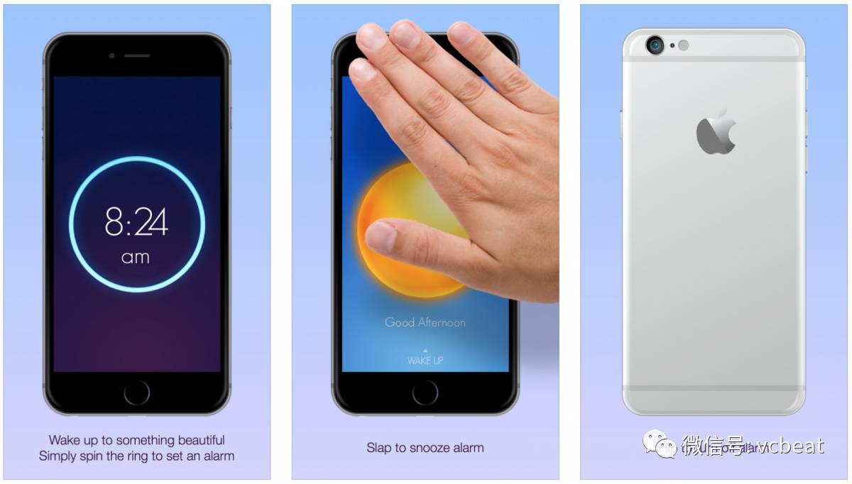 iPhone一直以来都有一个按照设备为标准的、作为时钟应用程序的一部分闹钟,但对一些人而言,套用一首老歌的歌词,“醒来是很难的”。所以闹钟为睡眠较重的人群保持了一些额外的特性:声音逐渐增大的闹铃,迫使用户摇动电话的震动模式,而加快其血液流动以唤醒他们,以及让手机更像一个老式闹钟而运作的,让你不得不敲击才能打盹的“拍打和翻转”模式。