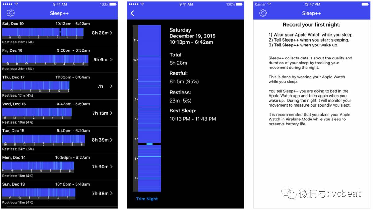 Sleep++就是这样一款应用程序,该应用程序可以跟Apple Watch结合,跟踪宁静的睡眠状态,并告诉用户他们的最佳睡眠时间以及用户睡眠时间的确切时间。