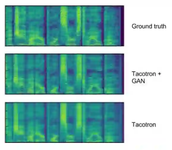 大多数神经文本转语音系统(TTS)都会生成过于平滑的频谱。当应用 Tacotron TTS 系统时,GAN 可以生成一些更加接近真实纹理的频谱,从而减少结果音频中的人工痕迹。