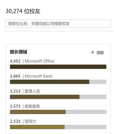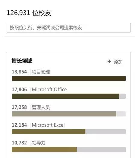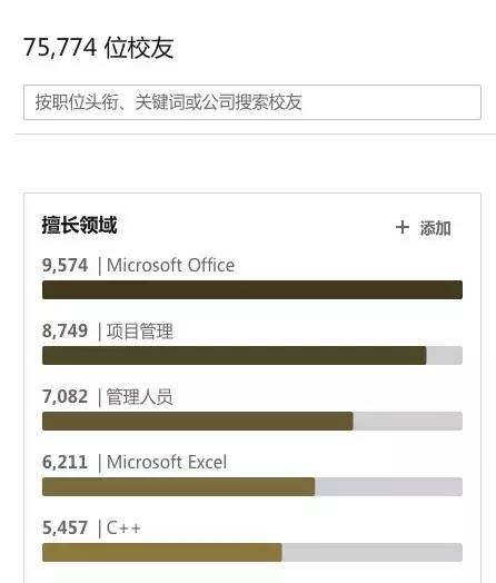 我们在调查过程中,搜罗了一大圈各个高校校友圈在领英上显示的擅长领域和工作去向,结果在领英上发现了一些有意思的数据。