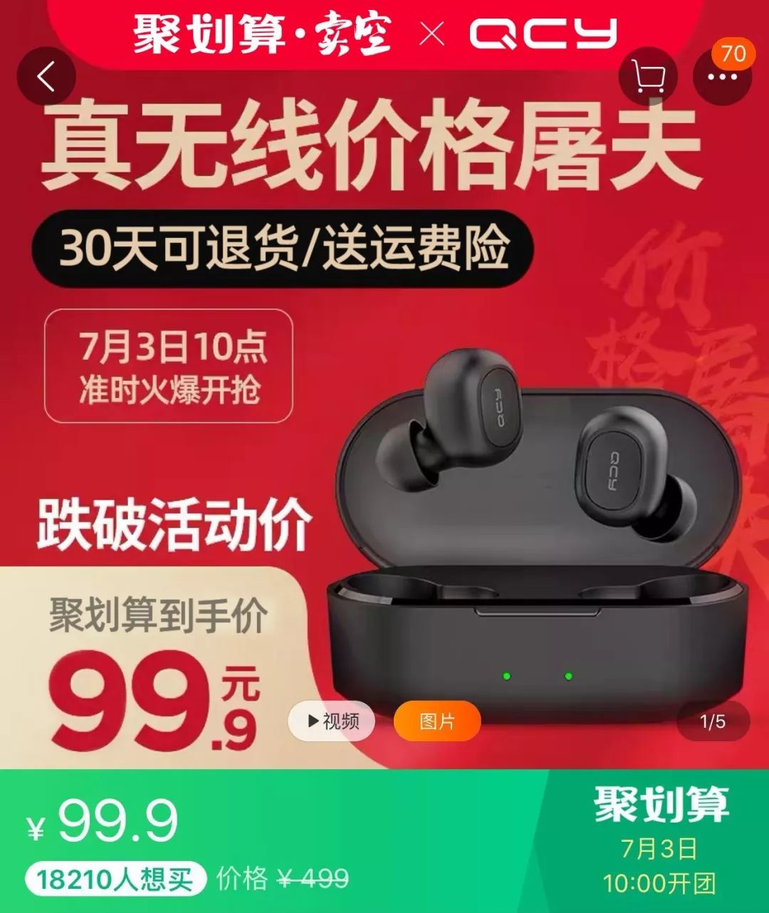 因此在这波真无线普及的浪潮下,聚划算理所当然地成为了打造平价「真无线」耳机的先行者。并且,这一次,它还找到了一个志同道合的伙伴:QCY。