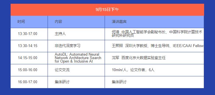 9月15日下午,会有三场精彩专场报告会同时进行。三场报告会以AI为核心,专题涉及AI+汽车、AI+医疗、AI前沿技术,设有专题报告和论文交流两大模块。