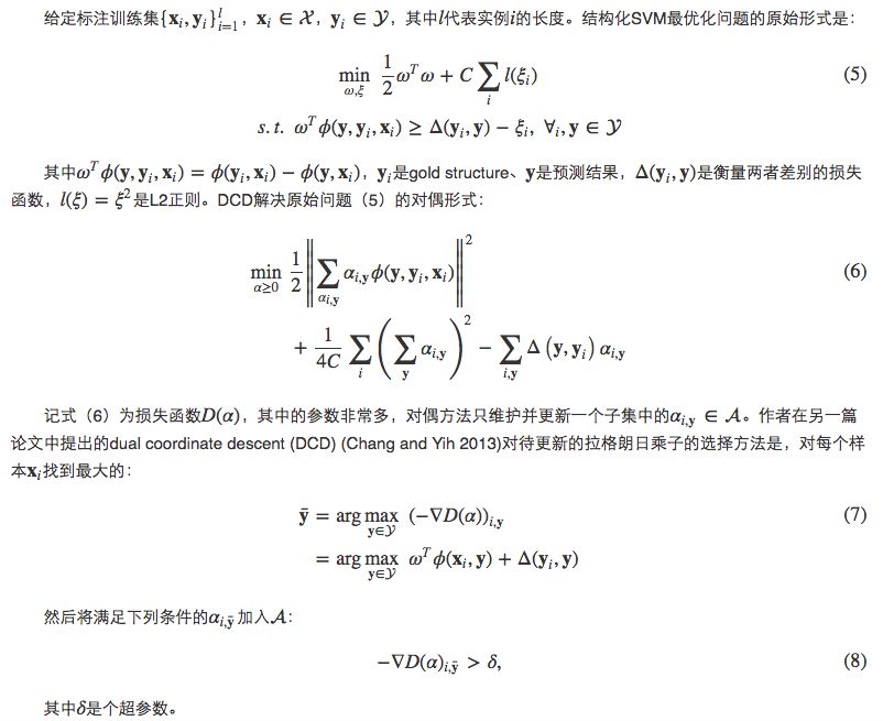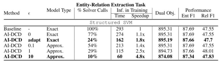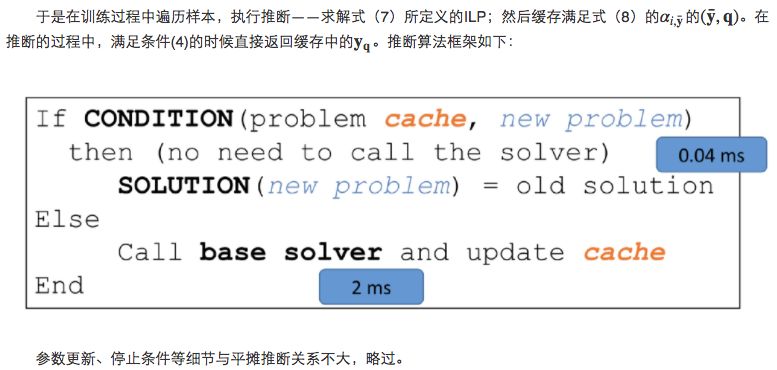 Chang et al. 2015提出加速结构化学习的近似算法AI-DCD,通过缓存整数线性规划中相似的问题及解,减少对ILP solver的调用次数,从而加速训练,同时不损失精度。