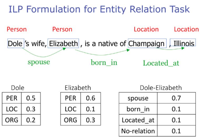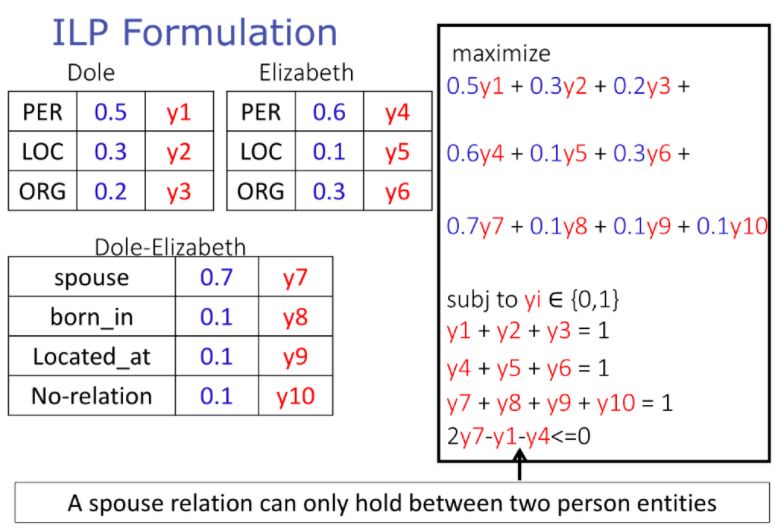 每个词语是实体的概率如表格所示,ILP的转化方法为: