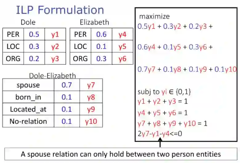 这里的 y都是二值向量中的元素,对应于论文中的 z。最后一个式子是约束配偶关系只能成立于两个人名之上。