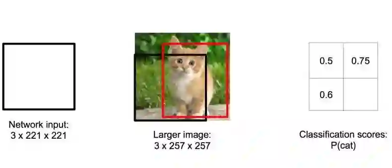 对一张图片,用各种大小的框(遍历整张图片)将图片截取出来,输入到CNN,然后CNN会输出这个框的得分(classification)以及这个框图片对应的x,y,h,w(regression)。