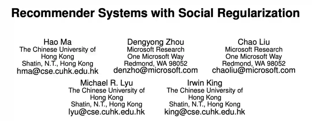 此外,除了最佳论文奖,WSDM大会还公布了「时间检验奖」的获奖工作——香港中文大学团队的“Recommender systems with social regularization”(WSDM 2011)。
